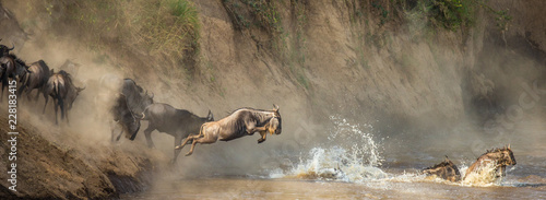 Wall mural : Wildebeests are crossing mara river - great migration - kenya - tanzania - maasai mara national park -