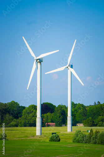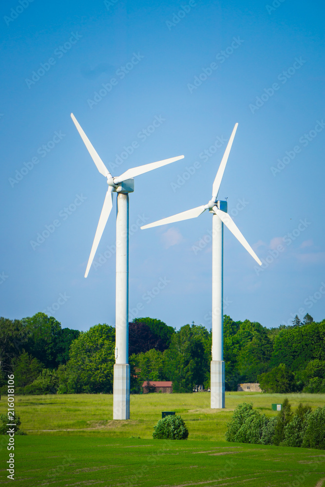 Wall mural windmill type wind electricity generator in the field in latvia in summer