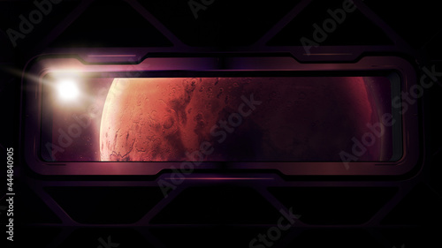 Wall mural window of a spaceship overlooking the mars planet.