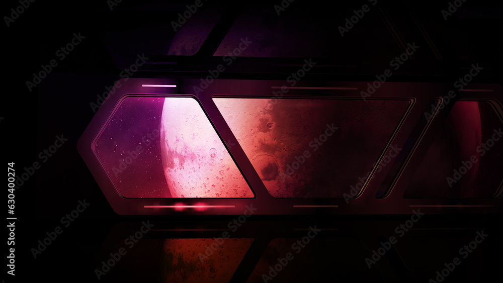 Wall mural windows of a spaceship overlooking the planet mars. - Wall murals Wall mural windows of a spaceship overlooking the planet mars. - Wall murals