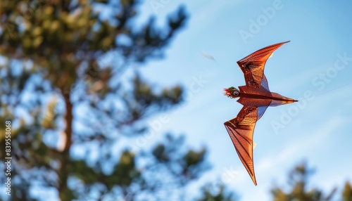 The watermark will not be included on Wall mural.: Winged predator in flight: a close-up of a kite toy soaring in the sky