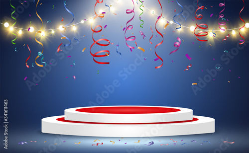 Wall mural winner background with signs of first, second and third place on a round pedestal. vector winner pod