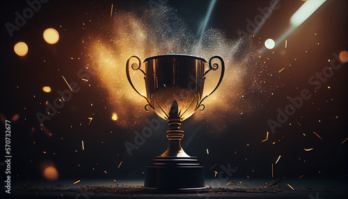 Wall mural : Winner trophy with flames and blurred background, generative ai
