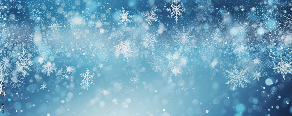 Wall mural winter background with snowflakes. new year header for a website with copy space.