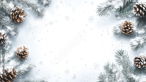 Wall mural winter background with space for text. wooden snowy white background with fir branches and pine cone - Wall murals Wall mural winter background with space for text. wooden snowy white background with fir branches and pine cone - Wall murals