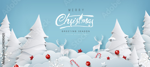 Wall mural winter christmas composition in paper cut style.merry christmas text calligraphic lettering vector i