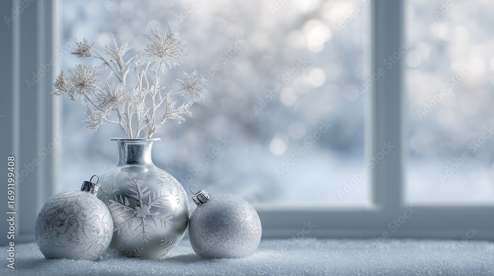 The watermark will not be included on Wall mural.: Winter snow or holiday motif shoot minimalist winter patterns a closeup of frost on a window vertica