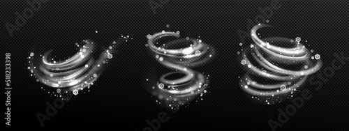 Wall mural : Winter wind effect with swirls and waves of white mist clouds with snow - vector realistic set of bli