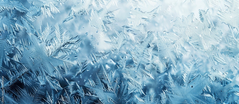 Winter window displays a frozen pattern in a blue ice background ideal as a texture for wallpaper orWall mural