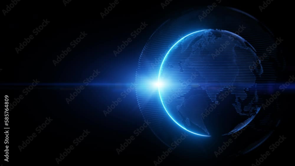 Wall mural wireframe earth rotating animation technology digital abstract background