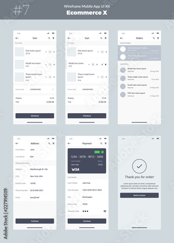 Wall mural : Wireframe kit for mobile phone - mobile app ui, ux design - new ecommerce interface: cart, order, addr