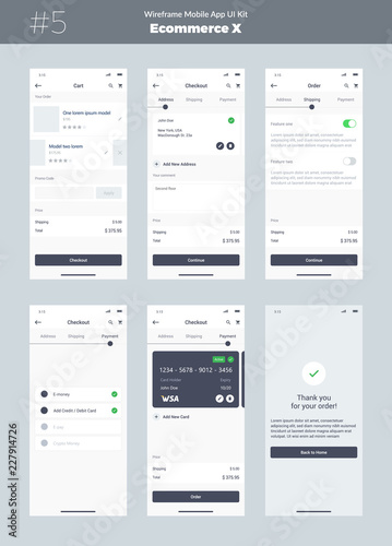 Wall mural wireframe kit for mobile phone. mobile app ui, ux design. new ecommerce screens: cart, checkout, ord - Wall murals Wall mural wireframe kit for mobile phone. mobile app ui, ux design. new ecommerce screens: cart, checkout, ord - Wall murals