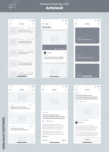 The watermark will not be included on Wall mural.: Wireframe kit for mobile phone - mobile app ui, ux design - new os articles - blog, list and articles s