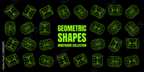 The watermark will not be included on Wall mural.: Wireframe lined shapes - perspective mesh, 3d grid - low poly geometric elements - retro futuristic des