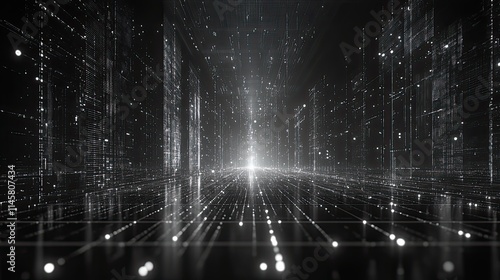 The watermark will not be included on Wall mural.: Wireframe network connections in abstract cyberspace represent future technology -