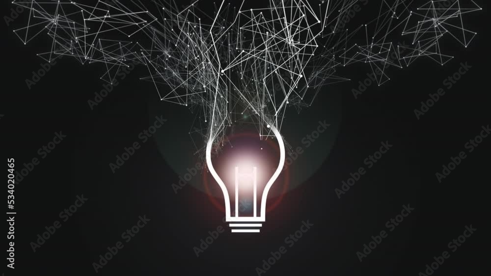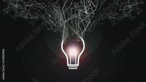 Wall mural wireframe point connecting network arises from symbol of light bulb on black background. concept for - Wall murals Wall mural wireframe point connecting network arises from symbol of light bulb on black background. concept for - Wall murals