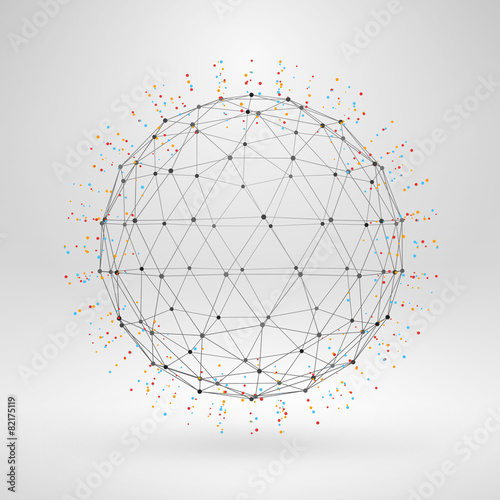 Wall mural wireframe polygonal element. 3d sphere with lines and dots