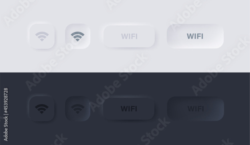 Wall mural wireless and wifi icon with white neumorphism buttons - wi-fi signal symbol or internet access in sq - Wall murals Wall mural wireless and wifi icon with white neumorphism buttons - wi-fi signal symbol or internet access in sq - Wall murals