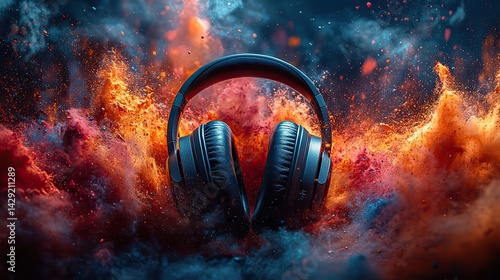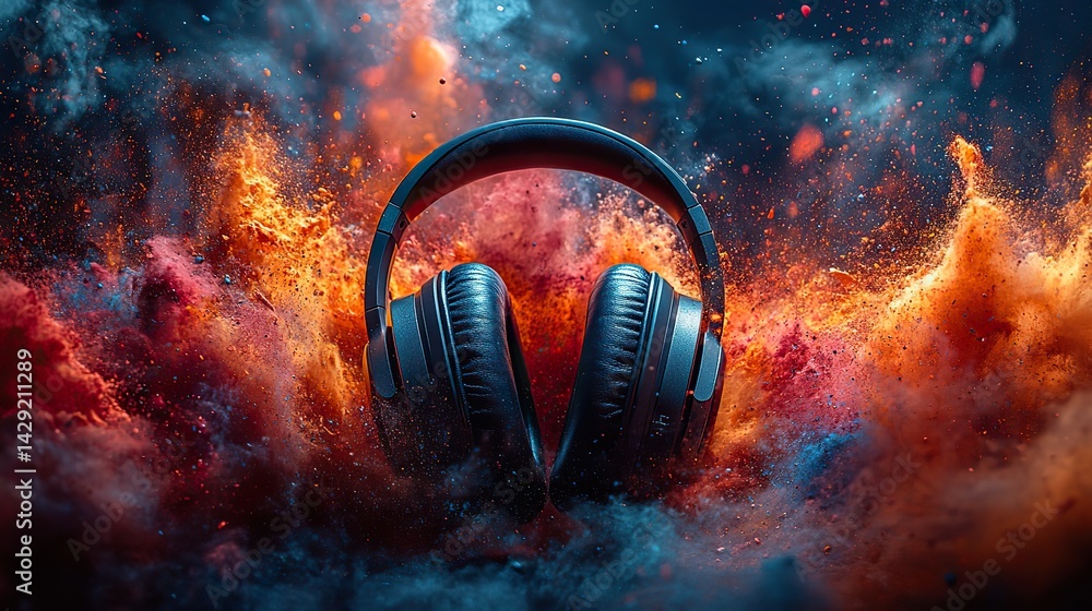 Wall mural wireless headphones surrounded by an explosion of vibrant paint splatters create a dynamic visual of - Wall murals Wall mural wireless headphones surrounded by an explosion of vibrant paint splatters create a dynamic visual of - Wall murals