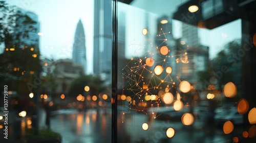 Wall mural wireless network and connection technology is illustrated through abstract buildings set against a c - Wall murals Wall mural wireless network and connection technology is illustrated through abstract buildings set against a c - Wall murals