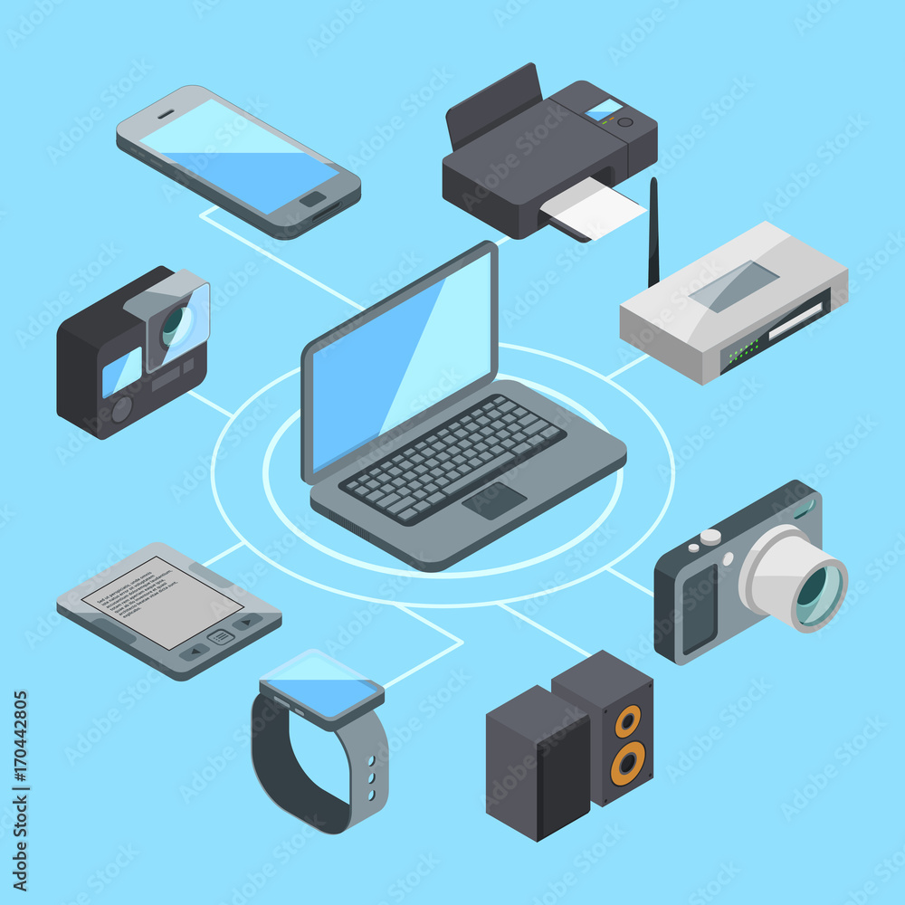 Wall mural wireless or wifi connection near laptop and other computer gadgets. modem and router - Wall murals Wall mural wireless or wifi connection near laptop and other computer gadgets. modem and router - Wall murals
