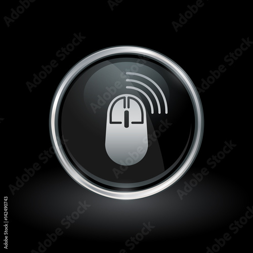 Wall mural : Wireless pc accessory symbol with computer mouse icon inside round chrome silver and black button em