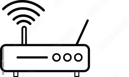 Wall mural : Wireless router line art with signal waves, black-and-white vector line illustration of a wireless r