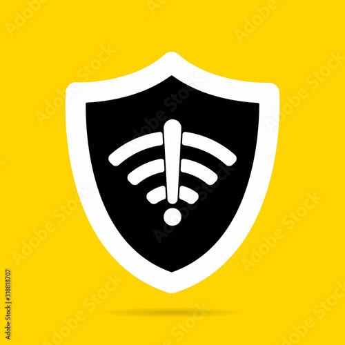 Wall mural : Wireless shield no wifi icon sign flat design vector illustration - wifi internet signal symbols in t