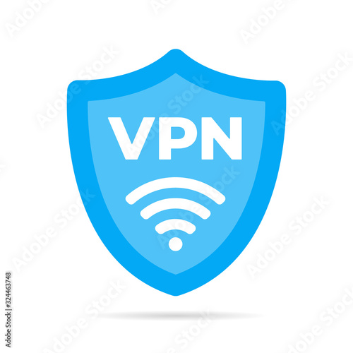 Wall mural : Wireless shield vpn wifi icon sign flat design vector illustration - wifi internet signal symbols in
