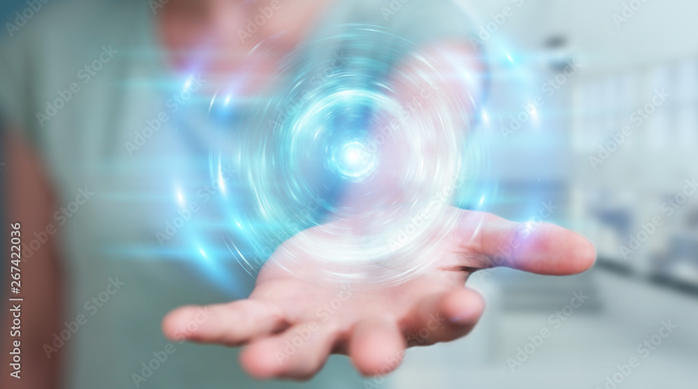 Wall mural : Woman creating new futuristic energy power source 3d rendering