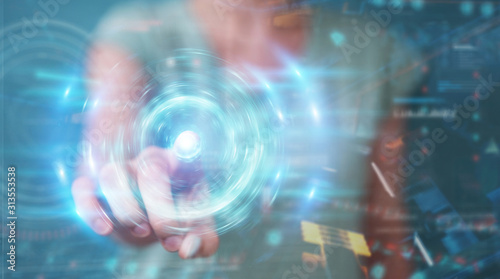 Wall mural : Woman creating new futuristic energy power source 3d rendering