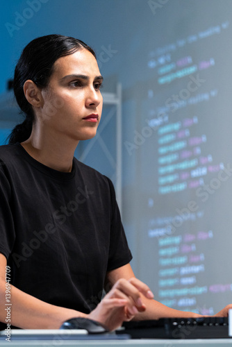 Wall mural woman developer app coding tech workspace laptop it cloud project network interface design freelance - Wall murals Wall mural woman developer app coding tech workspace laptop it cloud project network interface design freelance - Wall murals