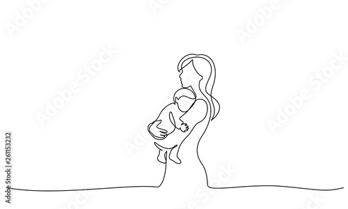 Wall mural woman hold her baby with air balloons - Wall murals Wall mural woman hold her baby with air balloons - Wall murals