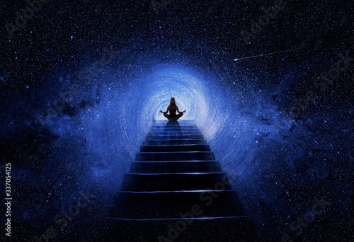 Wall mural woman in yoga pose at top of stair - Wall murals Wall mural woman in yoga pose at top of stair - Wall murals