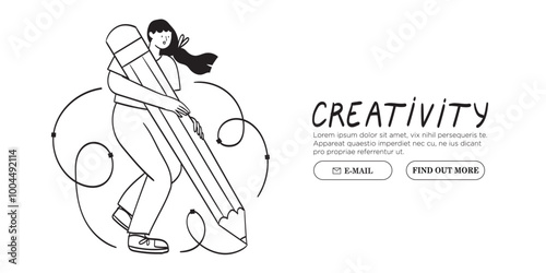 Wall mural : Woman is working on ui ux design project - designer drawing sketch in vector program with big pencil -