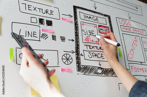 Wall mural women website designer creative planning application development drawing template layout framework w
