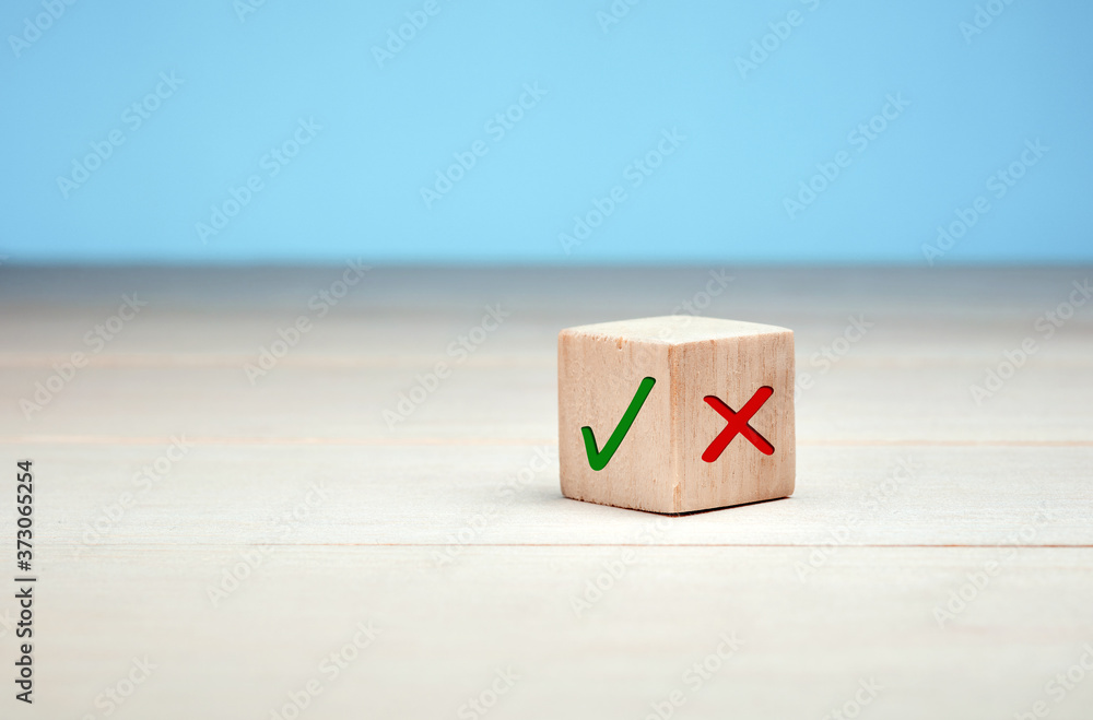 Wall mural wooden block with green check mark and red x. choice and decision making concept. - Wall murals Wall mural wooden block with green check mark and red x. choice and decision making concept. - Wall murals