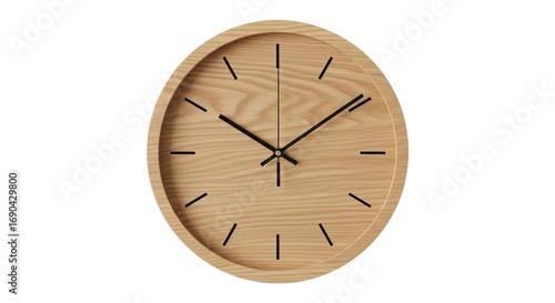 Wall mural : Wooden clock with a minimalist design isolated on transparent background, showing the time with a si