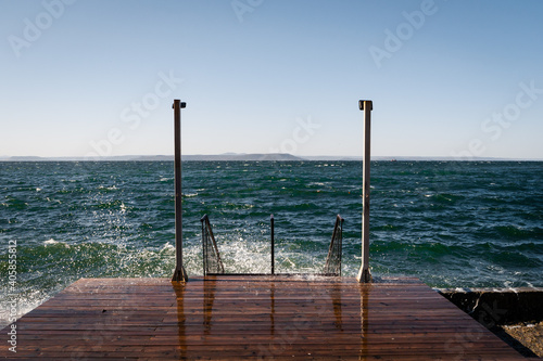 The watermark will not be included on Wall mural.: Wooden pier with sea background