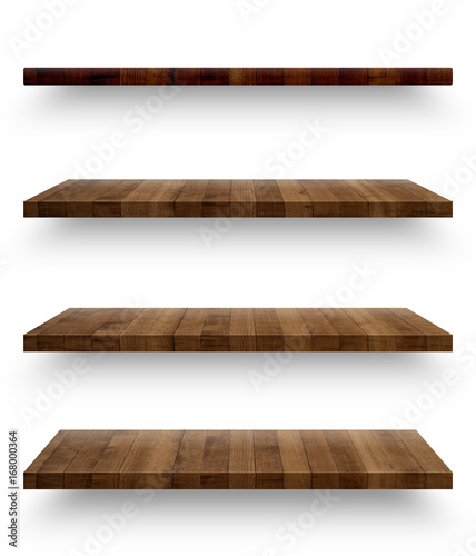 Wall mural : Wooden shelf template set isolated on white background with clipping path