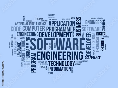 The watermark will not be included on Wall mural.: Word cloud background concept for software engineering - computer programming system, cloud technolog