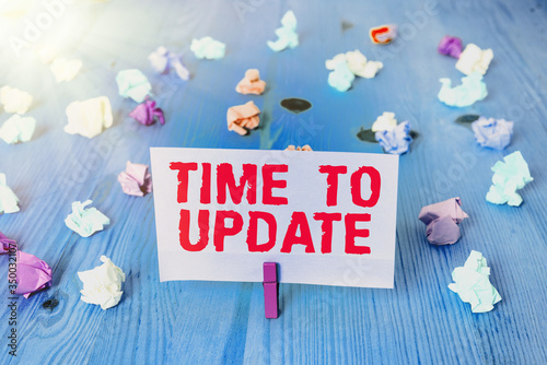 Wall mural : Word writing text time to update - business photo showcasing this is right moment to make something m