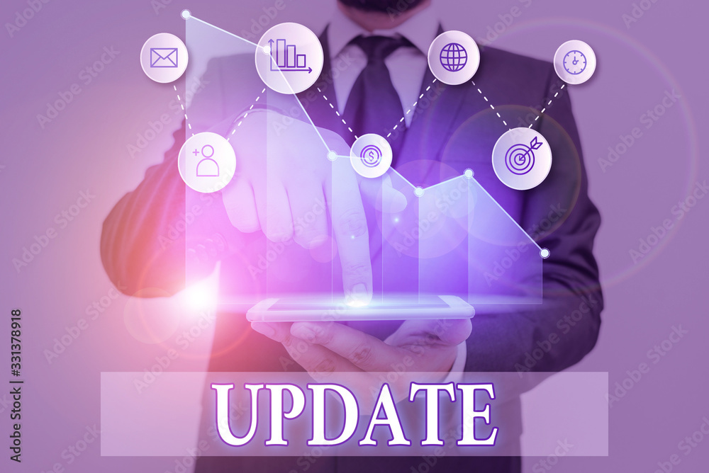 Wall mural : Word writing text update - business photo showcasing make something more modern or up to date like so