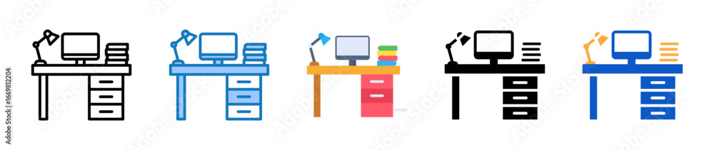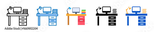The watermark will not be included on Wall mural.: Work table multiple style icons set design vector illustration -