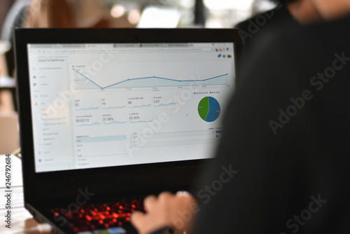 Wall mural : Worker checking website traffic visitor on analytics report -