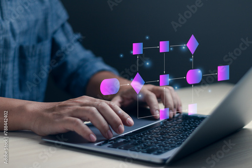 Wall mural : Workflow processes and flowchart, business structure - businessman showing business process, analysis