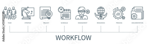 The watermark will not be included on Wall mural.: Workflow vector infographic in minimal outline style