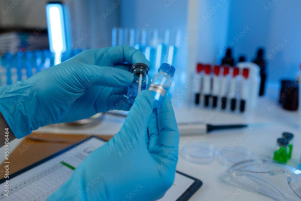 The watermark will not be included on Wall mural.: Working atmosphere in the laboratory, chemistry and science specialist working in a lab with various