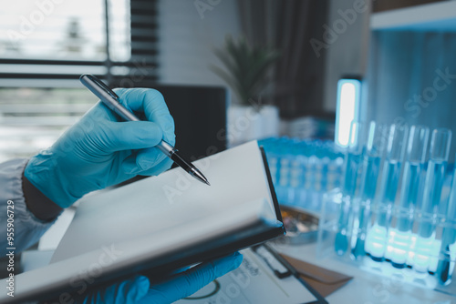 The watermark will not be included on Wall mural.: Working atmosphere in the laboratory, chemistry and science specialist working in a lab with various