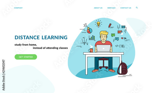 Wall mural : Working with laptop at workplace - flat concept vector website template and landing page design of st